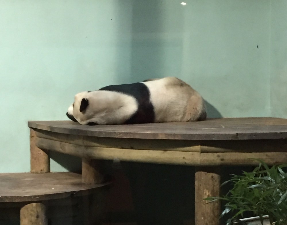 Breakfast in the Printing PressWe then headed out to Edinburgh Zoo as we wanted to see the Giant Panda! If you want to do the same we recommend to book your tickets online like us as you get to pick a free panda viewing. You can book your tickets at edinburghzoo.org.uk. If you wait until the day to do this there might be no spaces left depending on the time of year. The website also gives information on exhibit closures and the panda viewing does close during a certain time period for breeding season. The zoo also has Koalas but unfortunately this enclosure was closed during our visit. We understand zoos are not to everyone’s liking but if you do want to see the Giant Panda, Edinburgh Zoo is an excellent choice. The panda was sleeping when we arrived but we felt very lucky to see one because as I mentioned before you are not guaranteed to see the panda.